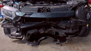 事故でフレームが歪みタイヤに干渉して動かせないS660を修正。グラインダーで干渉部分を切断し、鉄チンホイールを装着して転がせる状態にした作業内容を紹介します。