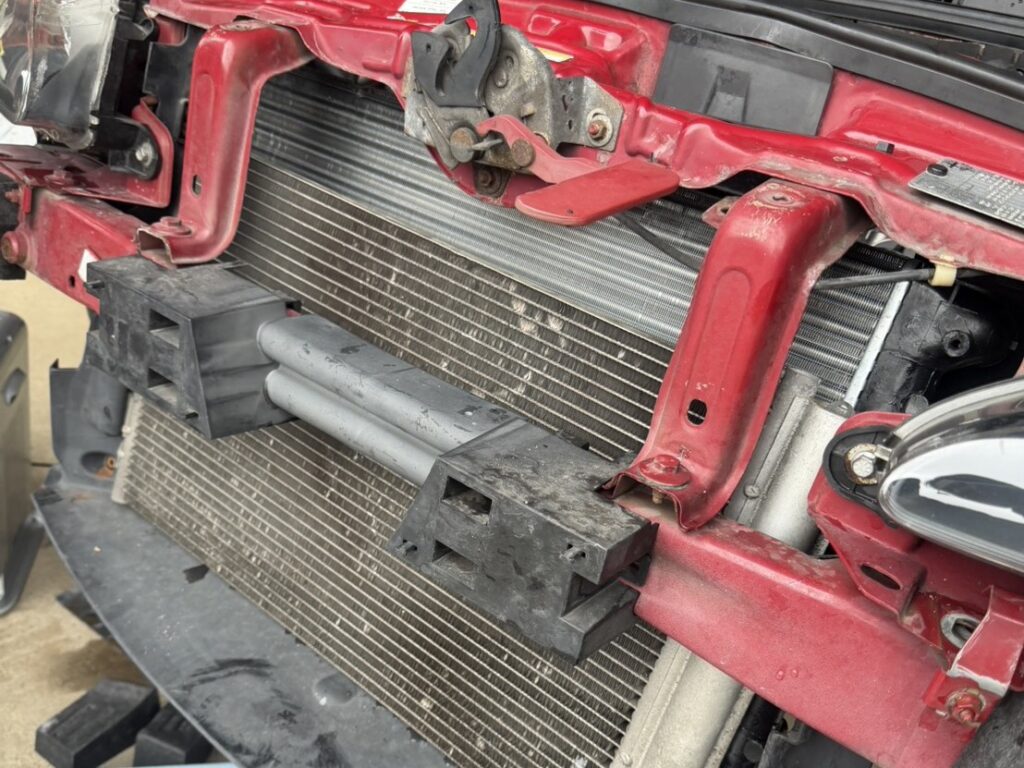 最初はフロントバンパーを外して、ラジエーターまわりにアクセスできる状態にしていきます。